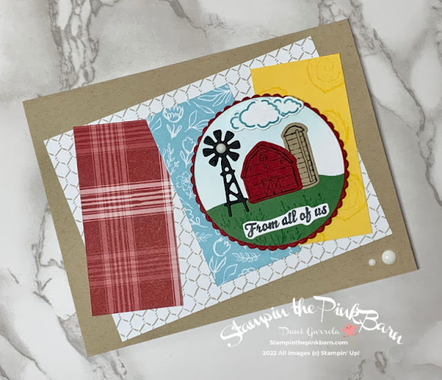 Check out this super adorable farm card, this is the new set ON THE FARM BUNDLE 160661 and DAY ON THE FARM DESIGNER SERIES PAPER 160835 is a Sale-a-bration level 1 freebie. What a great set, I always joke that should've been saved for my Million $ sales set lol!!